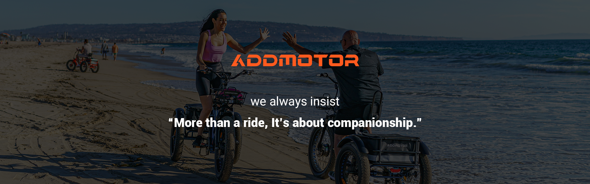 In 2011, on California’s sunny West Coast, two visionaries, Kin and Winkey, united at a mountain biking event. Kin, a mechanical engineer and cycling enthusiast, dreamed of creating powerful riding equipment. Winkey, an expert in sports medicine, focused on human health and movement. Together, they shared a passion for cycling, quality living, and environmental protection. Inspired by California’s thriving beach cycling culture, they created Addmotor’s first fat-tire folding electric bike. Designed to conquer soft sand and escape LA traffic, it combined Kin’s mechanical expertise with Winkey’s ergonomic precision. The result was a portable, easy-to-use bike that embodied freedom and exploration. Addmotor stands for “adding power to life,” offering a lifestyle of adventure and harmony with nature.