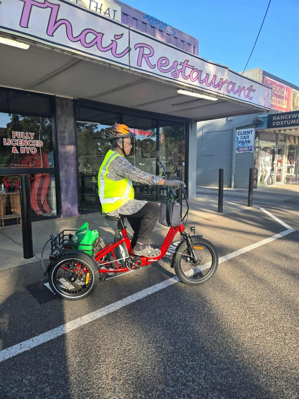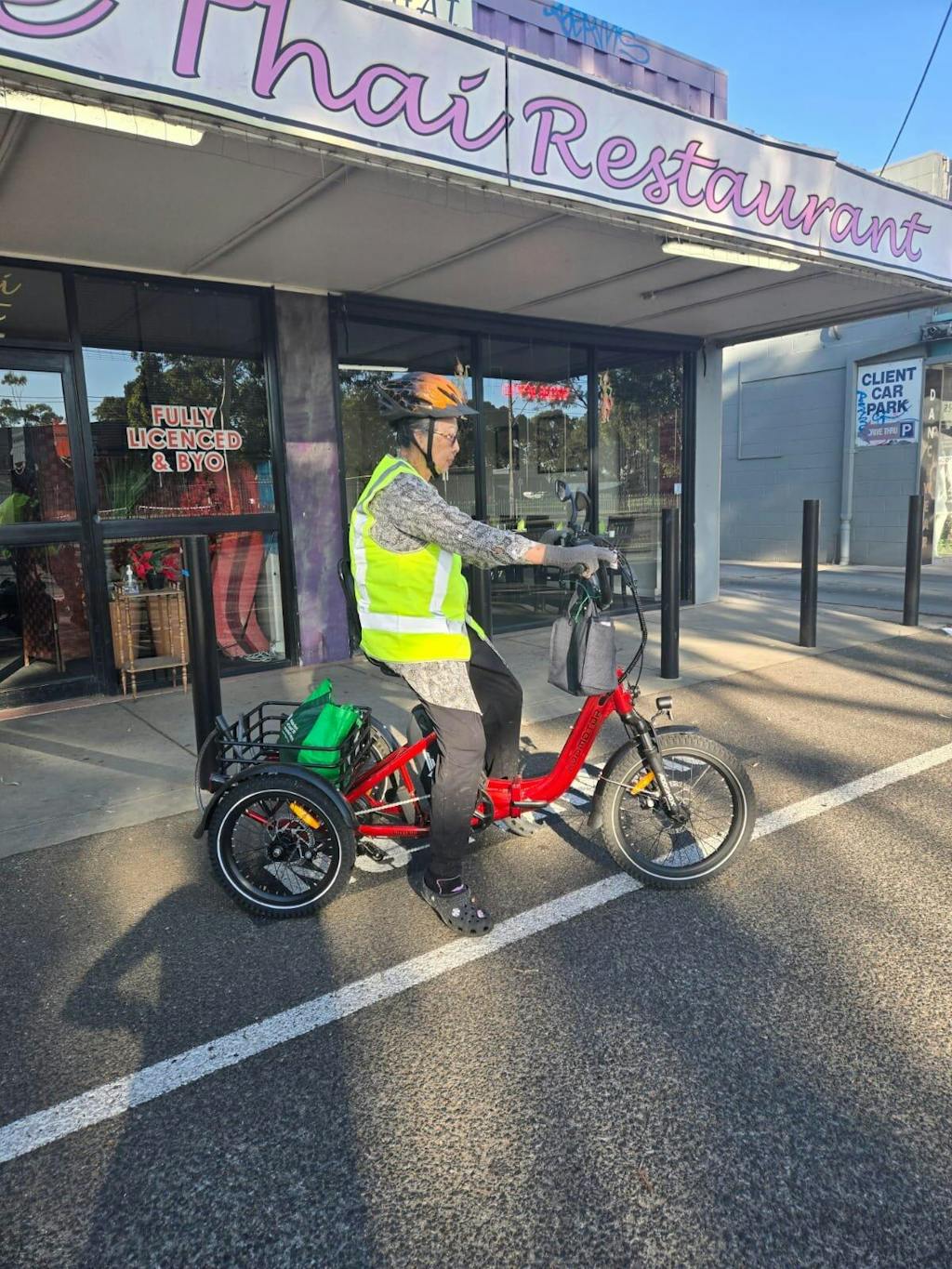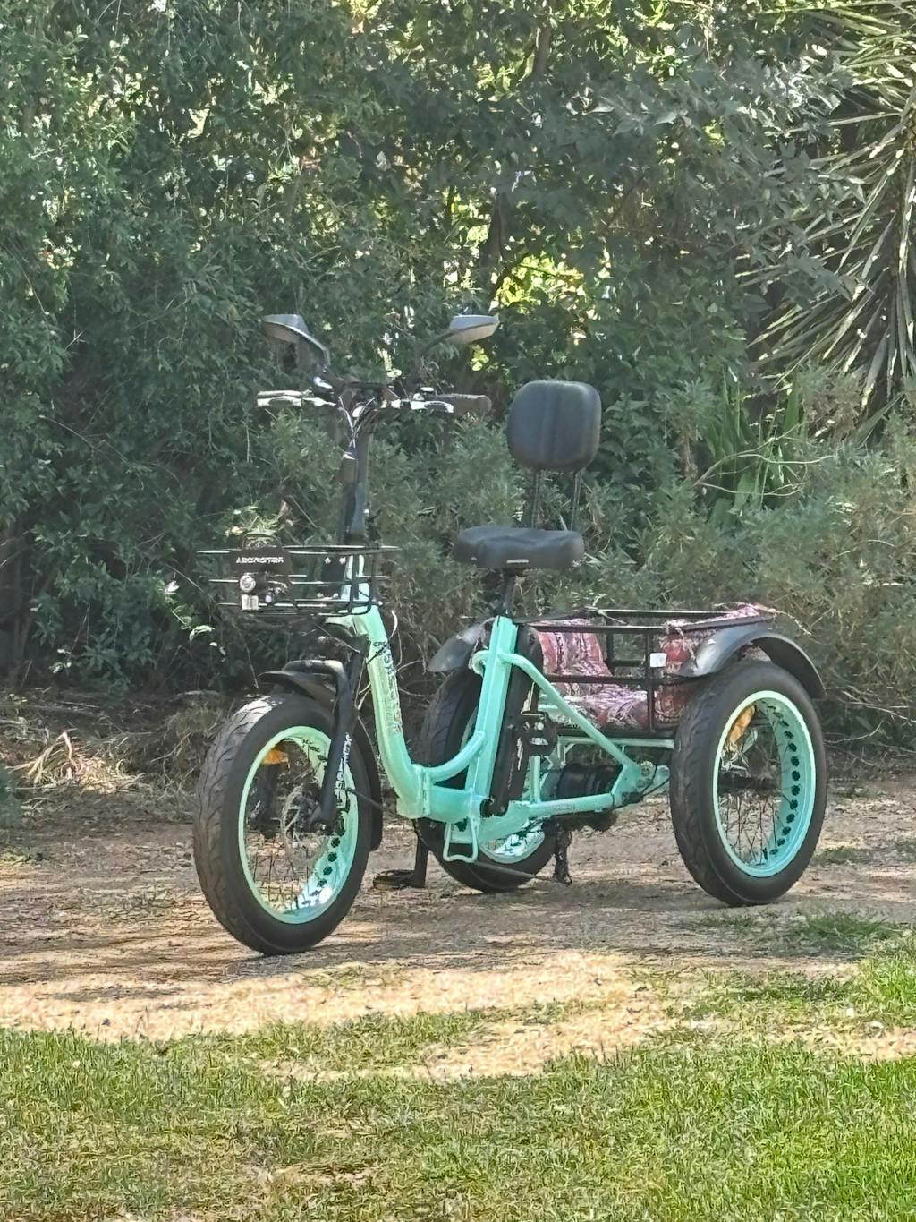 Thank you Addmotor for a great trike. We, myself and my son, are enjoying the new freedom the trike has provided. Our little dog is also enjoying the back basket for a ride to avoid the hot road tar to get to the local park.