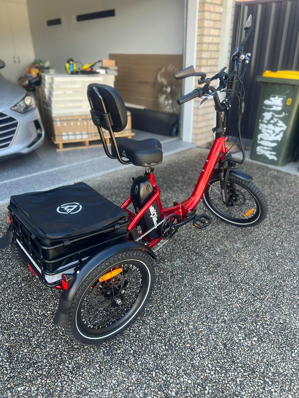 Just finished my first ride on my beautiful new trike. Its a great ride with plenty of power and impressive quality finish. It looks great and my husband had no problems at all in assembling the trike. Cant wait for my first shopping trip and test out the storage bag and front basket.