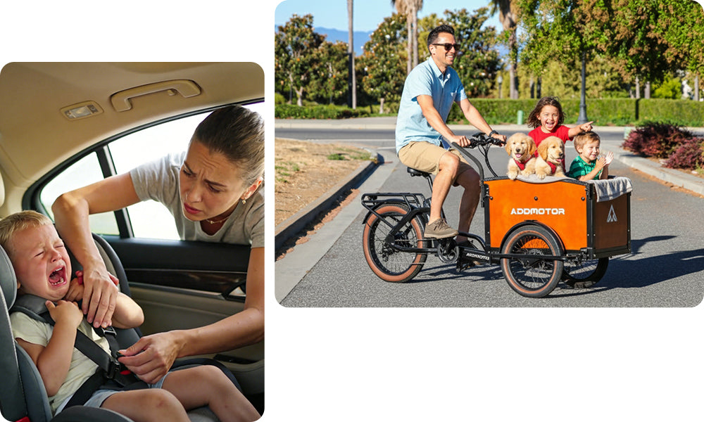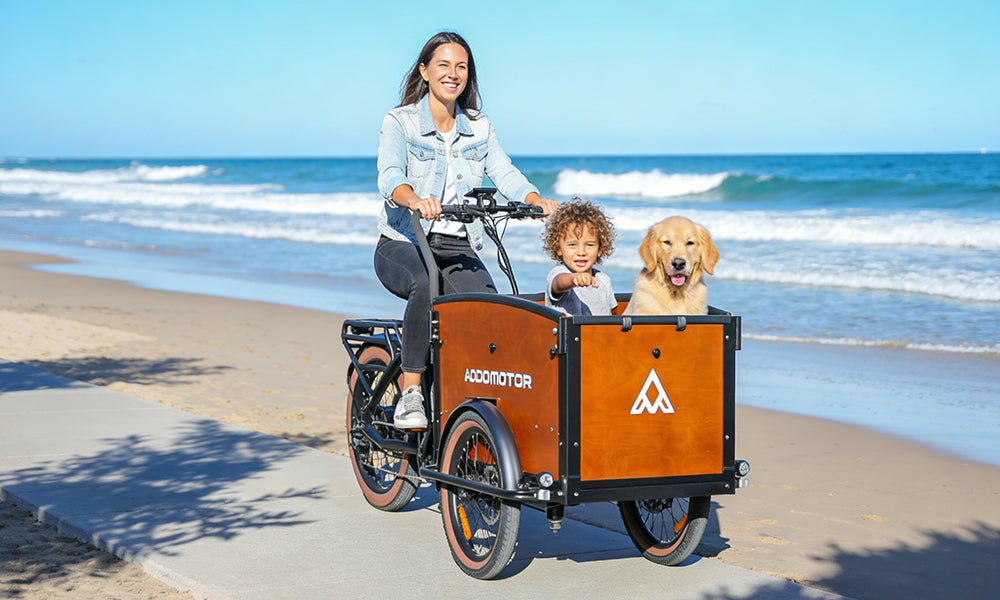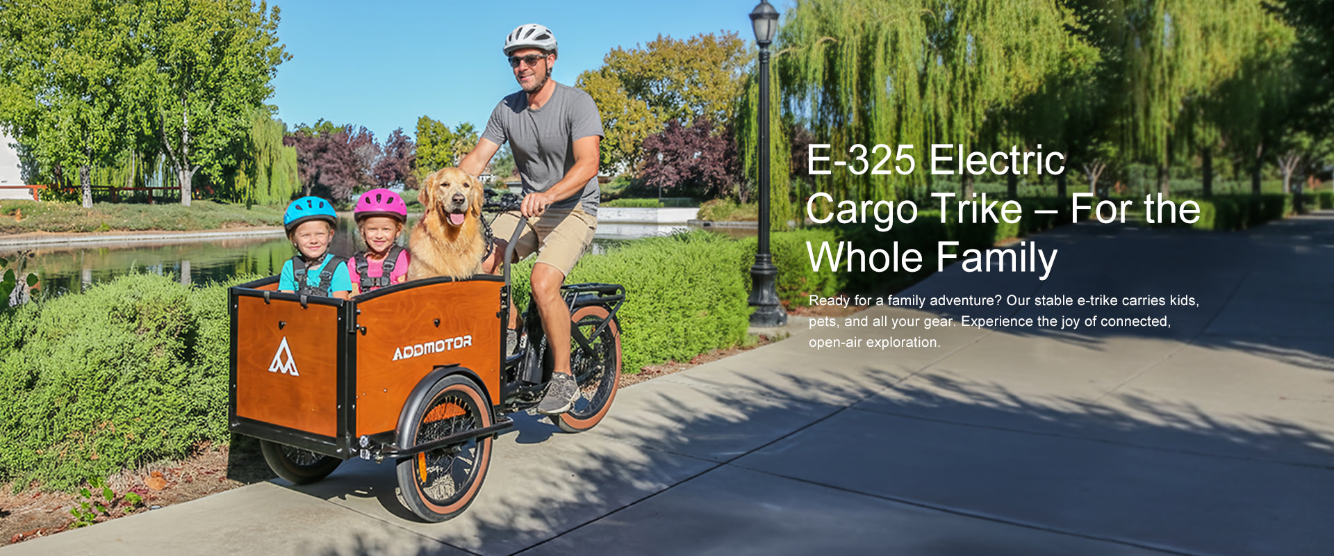 The E325 electric cargo bike is designed for families who love to explore the outdoors without the hassle of traditional transportation. Whether you're taking your children to the beach, exploring the park, or enjoying a family outing, this trike bike makes every adventure easier and more enjoyable. Inspired by the need for a safe, convenient way to travel with kids or pets, this trike bike features a spacious cabin and versatile design give you the freedom to bring your little ones or furry companions along for whole day of exploration without worrying about finding parking at crowded locations or dealing with sand-filled cars. Explore with ease and comfort!