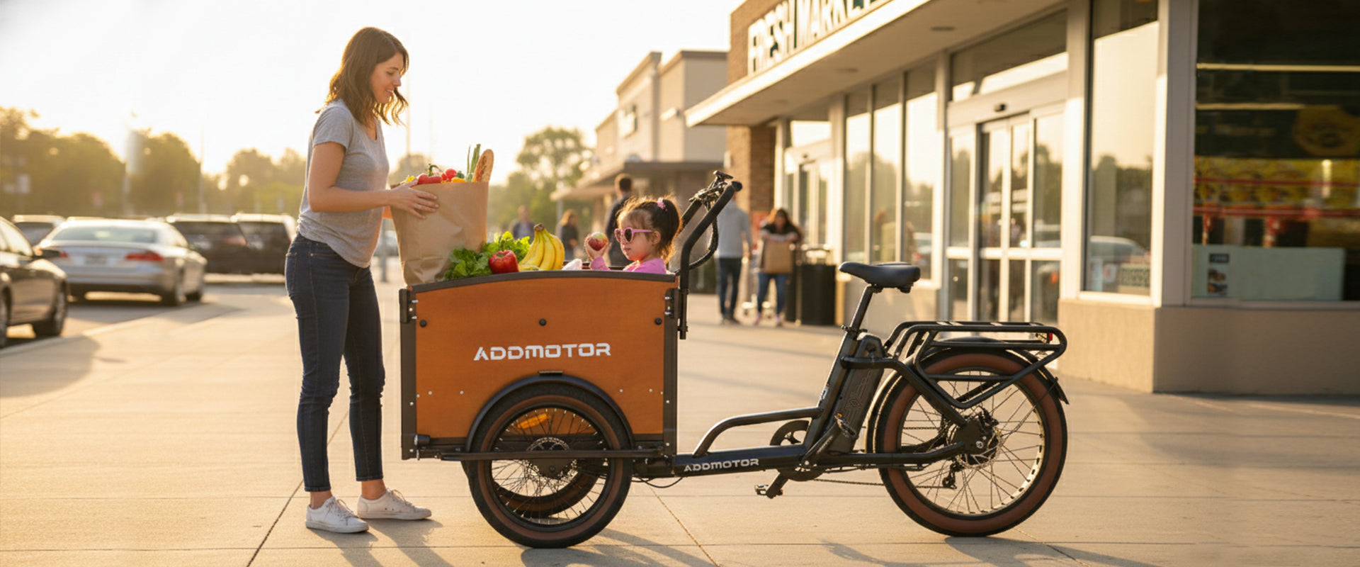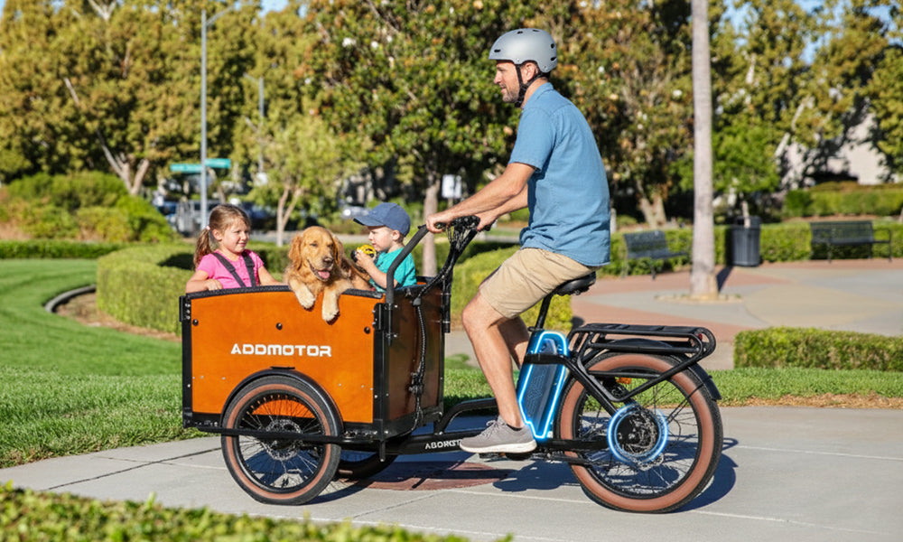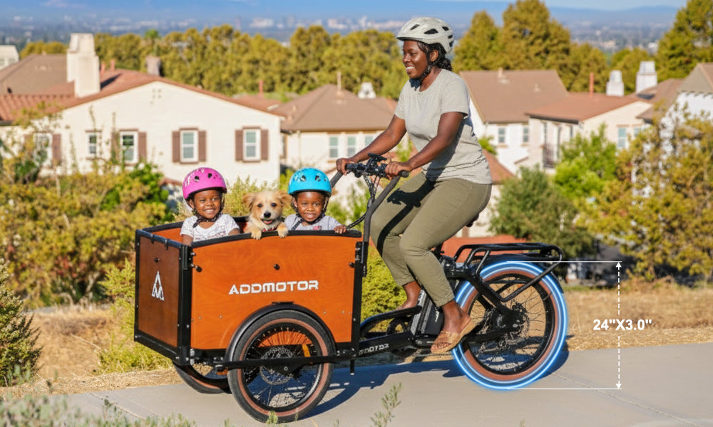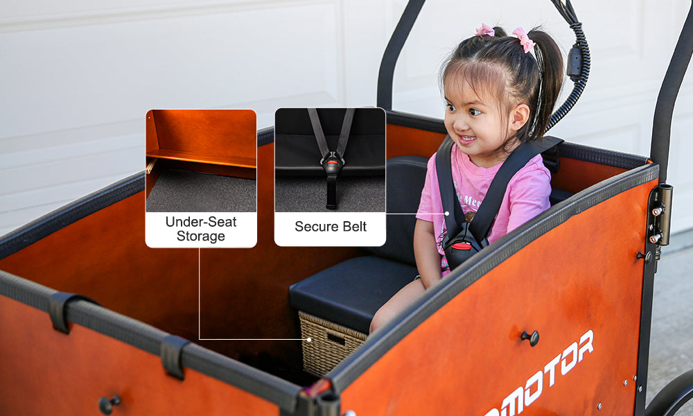 A sturdy 500w rear-drive motor with Shimano gear set makes the electric cargo bike much more stable and helps maintain a better balanced ride when climbing hills. accommodating even the heftiest of payloads without a problem. Enjoy a quiet yet powerful ride with pedal assist or throttle, perfect for riders of all levels.