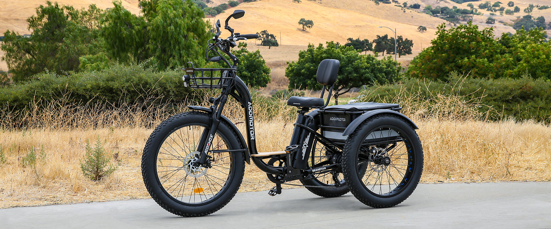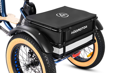 Try our Grandtan II fat tyre electric trike powered by a 500W rear-drive motor and 48V 20Ah Samsung battery, making it the best etrike with a footrest on the market.