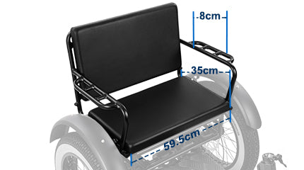 This e-trike features a passenger seat, allowing you to take your loved ones along for the ride. With a max payload of 230kg, it's perfect for transporting kids or elders. Enjoy a day out with this versatile e-trike.