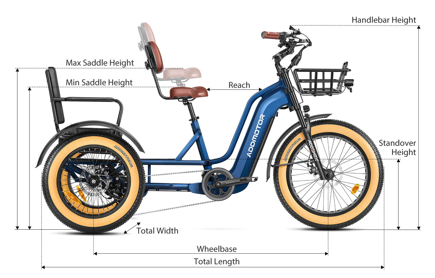 This e-trike features a passenger seat, allowing you to take your loved ones along for the ride. With a max payload of 230kg, it's perfect for transporting kids or elders. Enjoy a day out with this versatile e-trike.