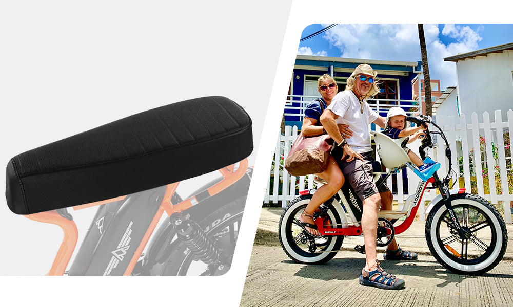 Inspired by the classic 1970s design, the banana seat provides superior comfort with its elongated, curved shape that distributes weight evenly. Spacious enough for two riders, it offers excellent support and reduces pressure on long rides, making every journey more enjoyable.