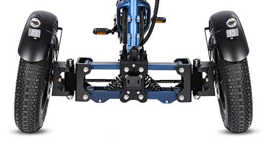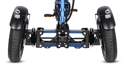 With front suspension & tilting steering, the SpytanX reverse etrike is more stable while turning corner, providing you ultimate comfort. The best 2 front wheel electric trike for you to enjoy life.