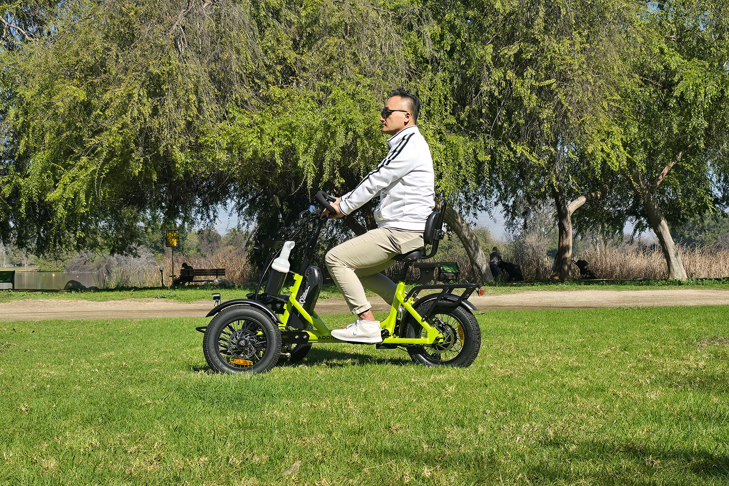 Thomas is retirees who loves to playing golft with his friends every week. He is also a cycling enthusiast. A carzy idea came to his mind, why can't I riding and playing golf at the same time? Here we go, SpytanX reverse trike. Unlike the golf cart which can be only use electricnic mode, this 2-front wheel trike has both throttle mode and pedal assit. Bring your shafl and sand bottle to cover the whole golf course with ease.