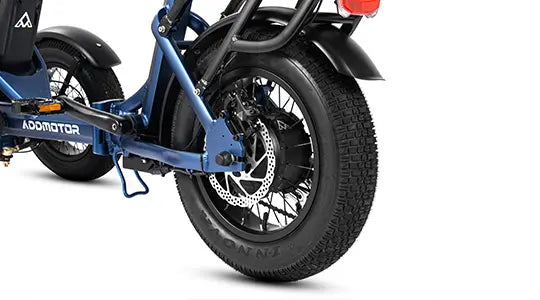 The Front suspension on the 2 front wheels absorb impacts from bumps and obstacles on the terrain, allowing you have more control on the bike while passing through all kinds of rough surface comfortably.